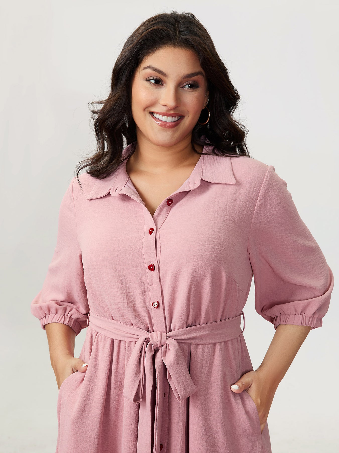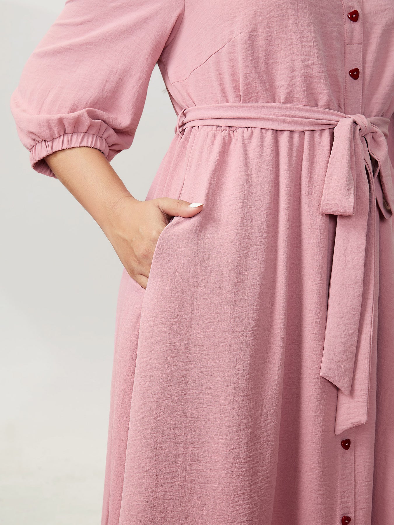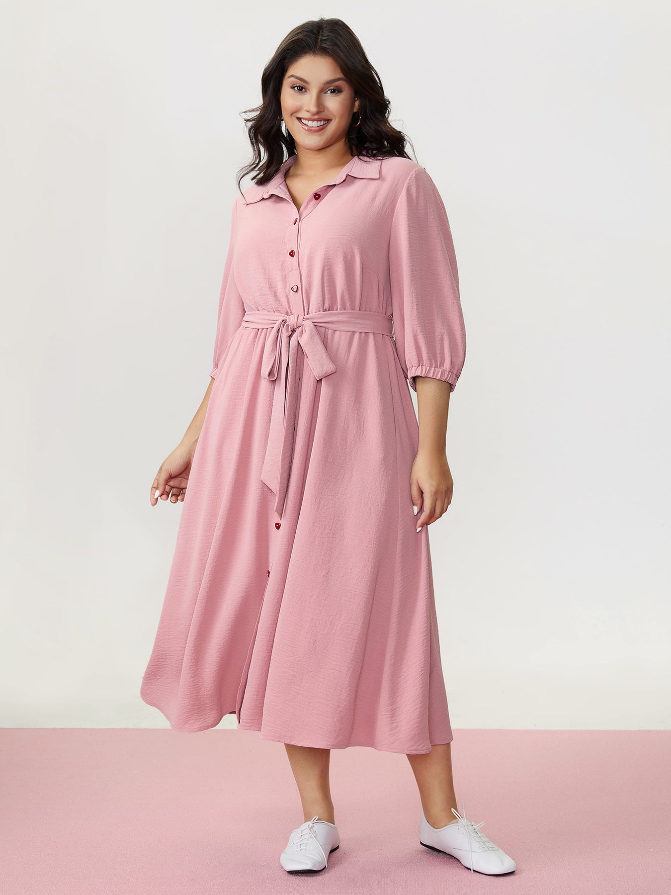 Layered Pleated Waist-Tie Shirt Dress