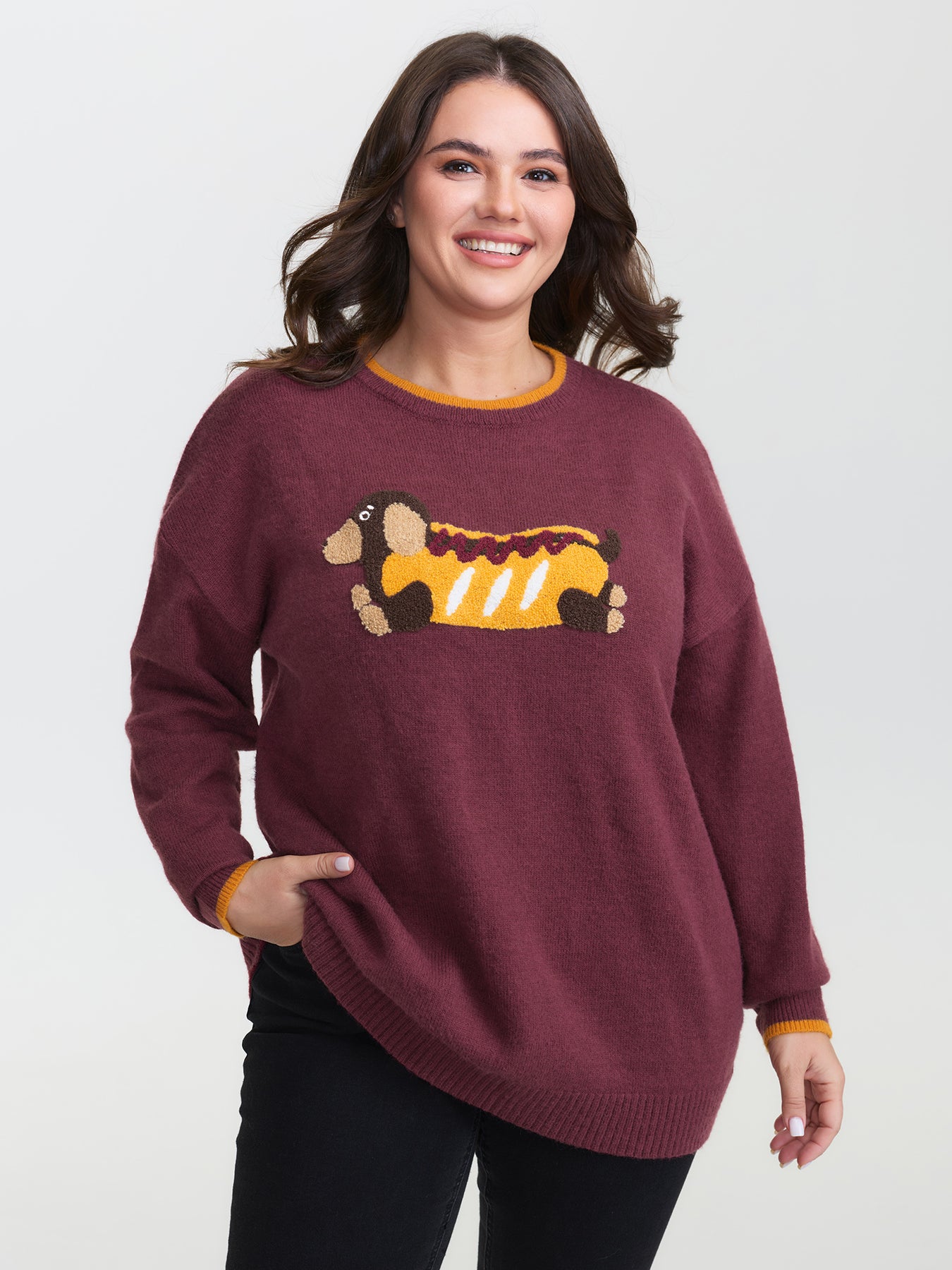 Supersoft Hotdog Embroidered Color Contrast Pullover